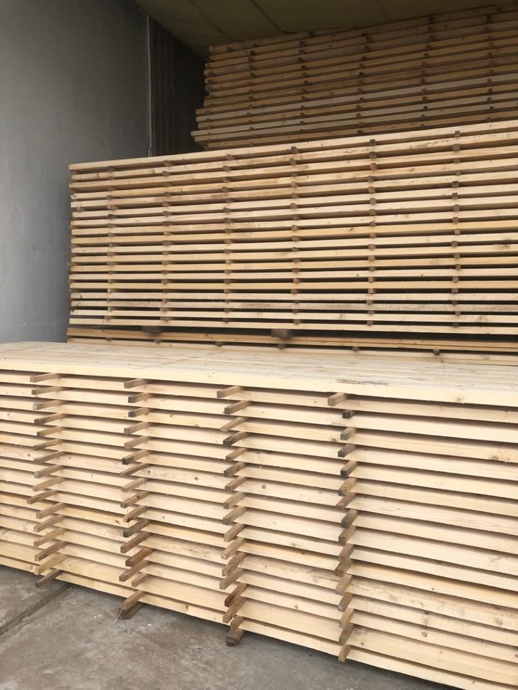 Камерная сушка леса — это технологический процесс удаления влаги из древесины с помощью циркуляции горячего воздуха в специальных сушильных камерах. Камерно высушенная древесина используется для производства мебели, столярных изделий, клееных конструкций, отделочных материалов, в строительстве, где требуется высокая стабильность и качество пиломатериалов. Стандартная влажность для большинства применений составляет 8-12%. Преимущества камерной сушки – обеспечивает более равномерное удаление влаги по всей толщине и длине древесины с минимальным риском деформаций. Высокая температура убивает насекомых и грибки. Древесина становится более прочной, легче обрабатывается, лучше склеивается и принимает отделочные покрытия.